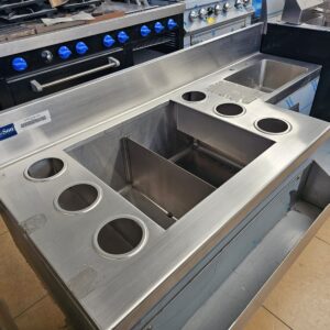 Mejora la eficiencia operativa: La disposición de los compartimentos facilita el acceso rápido a los utensilios y bebidas, agilizando el servicio.